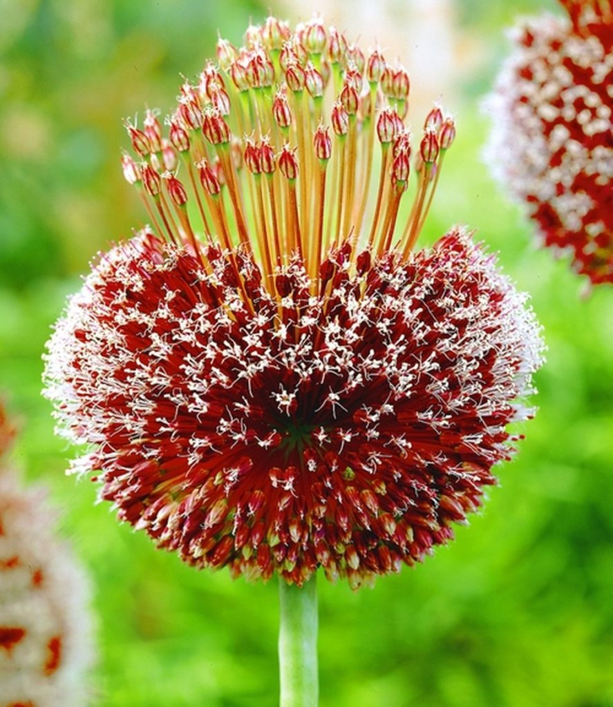 Allium Hair ®Allium Hair ® Allium Hair ®: Bloeit rond juni en wordt ongeveer 30-40 cm hoog. De bloem lijkt wel een buitenaardse verschijning met zijn rood-paarsachtige bolletjes op steel. |
