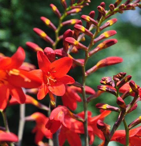 Crocosmia crocosmiiflora Anna MarieCrocosmia Anna Marie Crocosmia Anna Marie: Bloeit wat later in de zomer, juli-oktober, en wordt zo'n 100 cm hoog. De grote bloemen zijn donkerrood van kleur. |