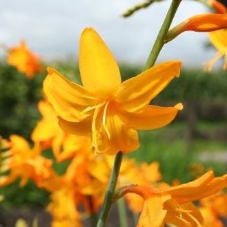 Crocosmia crocosmiiflora SunloverCrocosmia Sunlover Crocosmia Sunlover: Bloeit wat later in de zomer, juli-oktober, en wordt zo'n 70-80 cm hoog. De grote bloemen zijn oranjegeel van kleur. |