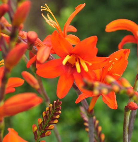 Crocosmia crocosmiiflora Orange EmberglowCrocosmia Orange Emberglow Crocosmia Orange Emberglow: Bloeit wat later in de zomer, juli-oktober, en wordt zo'n 70-100 cm hoog. De grote bloemen zijn oranje van kleur. |