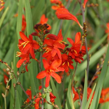 Crocosmia crocosmiiflora EmberglowCrocosmia Emberglow Crocosmia Emberglow: Bloeit wat later in de zomer, juli-oktober en wordt zo'n 70-100 cm hoog. De grote bloemen zijn oranjerood van kleur. |