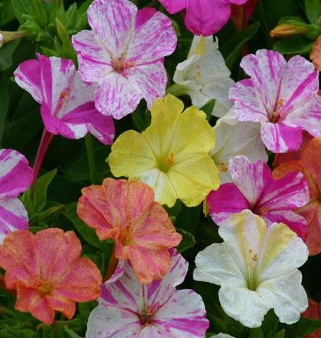 Mirabilis Jalapa Mirabilis Jalapa: Bloeit in de maand juni en wordt ongeveer 60 cm hoog. Het is een mooi mengsel van diverse zachte kleuren.