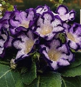 Gloxinia Prins Albert: Blüht etwa im Juli und wird etwa 25 cm hoch. Die Blüten haben eine dunkelblaue Farbe.