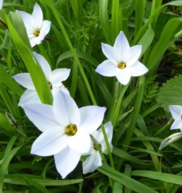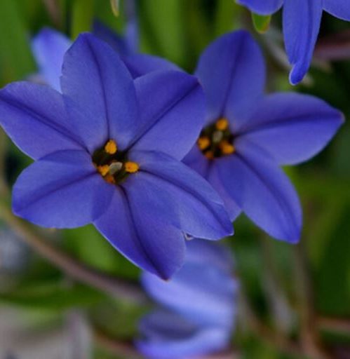 Ipheion Rolf Fiedler (syn. Triteleia Rolf Fiedler): Blüht im April und wird etwa 10 cm hoch. Die Blume hat eine samtige blaue Farbe.