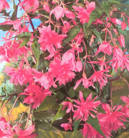 Begonia Pendula Cascade yellow: Flowers from June to October and grows to a height of about 20-25 cm. It is a hanging begonia with full, yellow flowers.