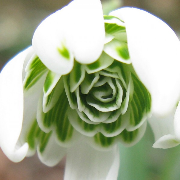 Galanthus nivalis Flore Pleno: Blooms early in the spring, in February-March, and grows to a height of about 15 cm. The color of the double flower is white.