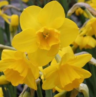 Narcissus Jetfire (cyclamineus): Bloeit in maart-april en wordt slechts 20 cm hoog. De bloem is geel van kleur en de cup is oranjerood.